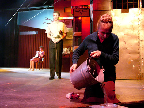 2004 - "Nieznajoma z Sekwany" na I planie: Maria Mamona (Dozorczyni), w tle Kinga Tabor (Lucyna), Jakub Kamieński (Student)