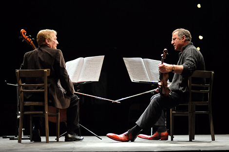 Dwaj aktorzy o różnych rodowodach scenicznych i silnych osobowościach mają już za sobą chwile sławy. Podejmują próbę powrotu na scenę. Przygotowują spektakl słowno-muzyczny według scenariusza napisanego przez jednego z nich - co z racji skrajnie różnych charakterów i doświadczeń życiowych bohaterów nie może się odbyć bez zgrzytów i zabawnych konfliktów. "Skarpetki, opus 124" - to partytura na świetne role.