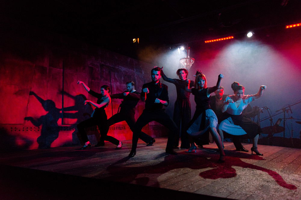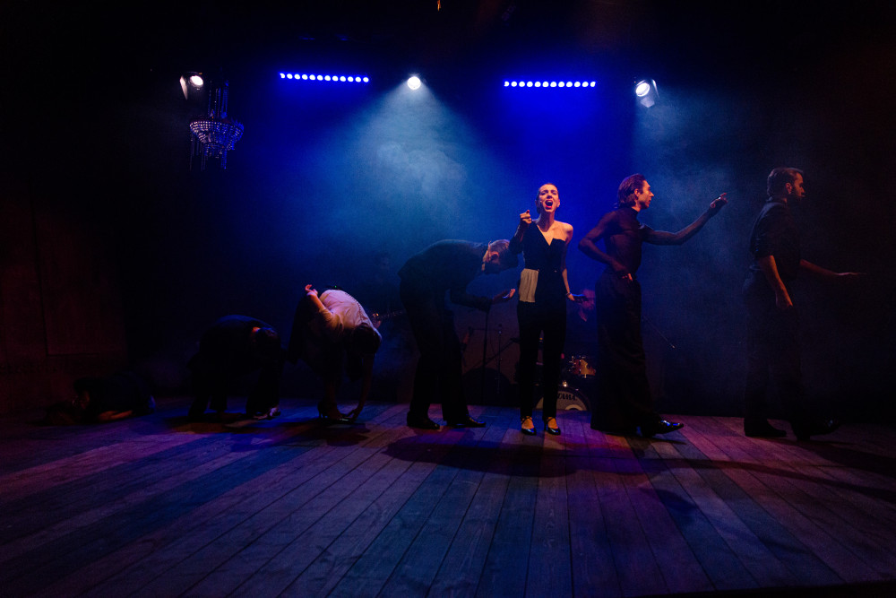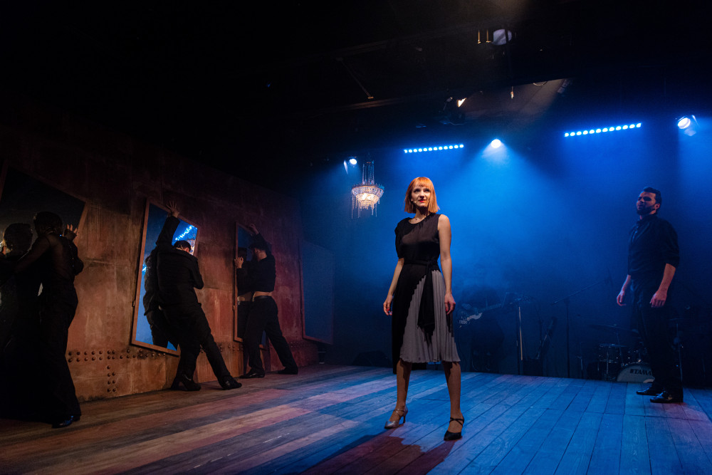 "Inspiracją do powstania spektaklu "Z ręką na gardle" jest ikoniczna postać Ewy Demarczyk - wybitnej pieśniarki, osobowości scenicznej, czarnego anioła. Repertuar po który sięgała był nie tylko wymagający muzycznie i literacko, ale był pisany na wielkie emocje. Ewa Demarczyk była jedna i jedyna. Była niepowtarzalnym zjawiskiem.